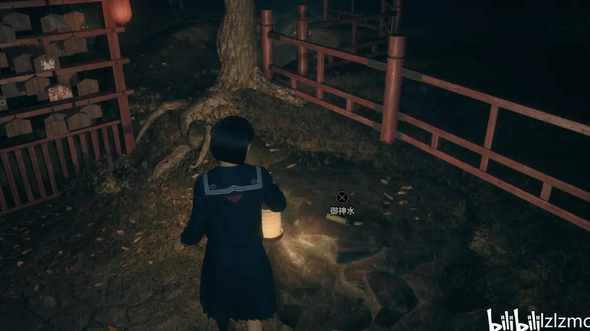 接下来,沿着道路一路向西,来到西北方的门牌处。这里是寻找御神水的地方,玩家可以在此找到御神水1,这是后续收集的关键道具。
