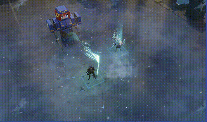 第二技能“掩护冲锋”则让她能够选择周围一个地格落下,为路径上的所有友方单位驱散减益效果,并施加“寒冰屏障”。在此技能的作用下,海伦不仅能够为队友提供保护,还能根据路径上友方单位的数量提高护盾效果,简直就像是给队友们披上了一层冰霜铠甲,增强了他们的生存能力。