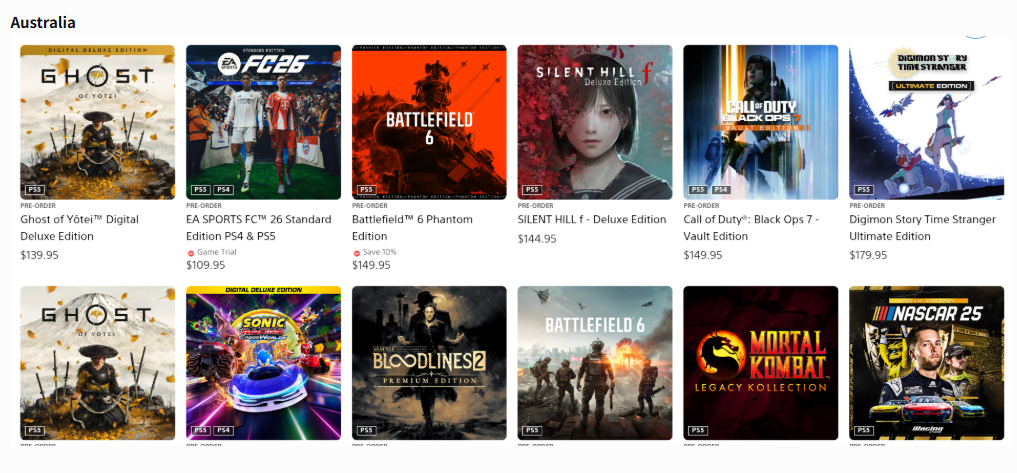 然而,令人意外的是,尽管争议不断,《羊蹄山之魂》在市场上的表现却如同黑马般强劲。根据玩家社区IconEra用户Puff分享的数据,这款游戏在美国、英国、澳大利亚、加拿大等11个国家的PlayStation商店预购榜上均进入前三名,甚至在多个地区位列第一,展现了其强大的市场吸引力。